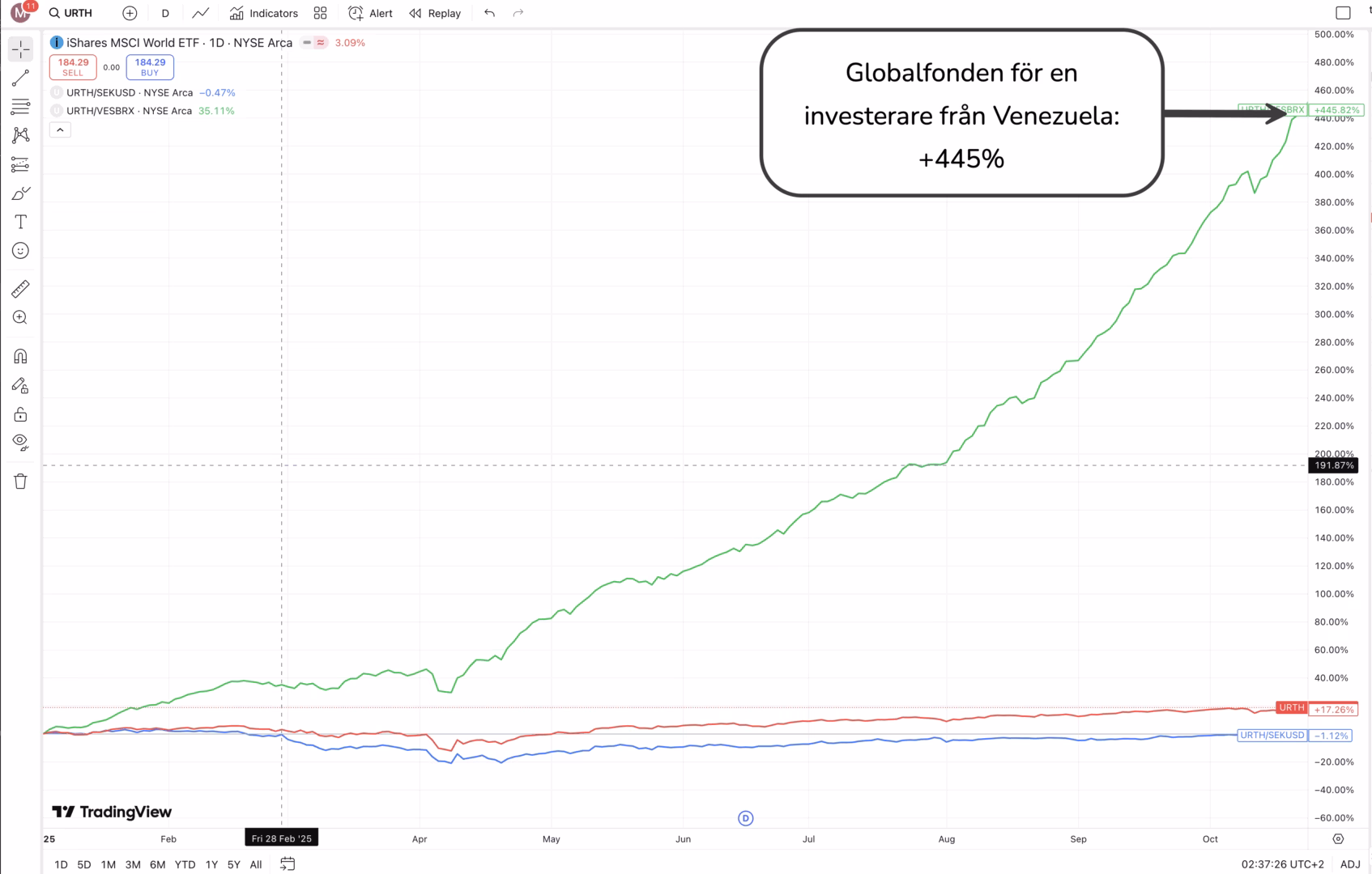 Jag skriver denna artikel av två anledningar. Den första är att på senare tid har många av oss känt oss lite som förlorare på grund av den svenska kronan. Om vi tittar på den börshandlade globalfonden ”iShare MSCI World ETF” med kortnamnet URTH så är den upp +18.7% för en amerikan men vi svenskar har faktiskt gått back 1.1% (per 22 oktober).