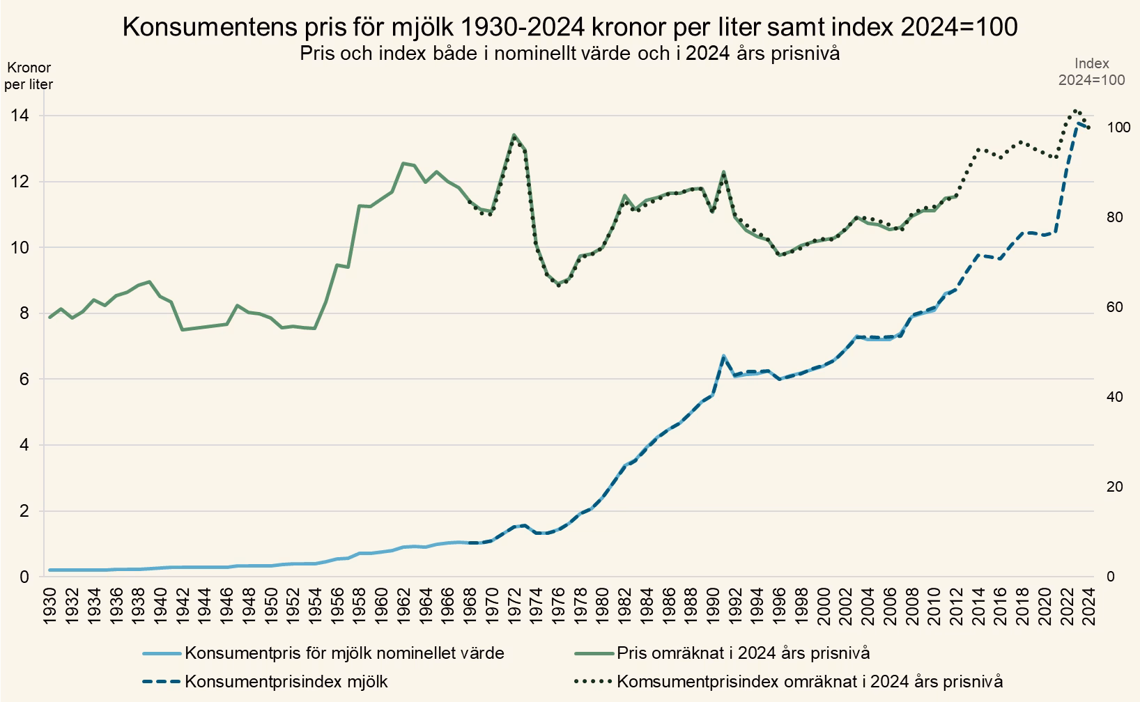 - Det svenska mjölkpriset 1930 - 2024 som exempel