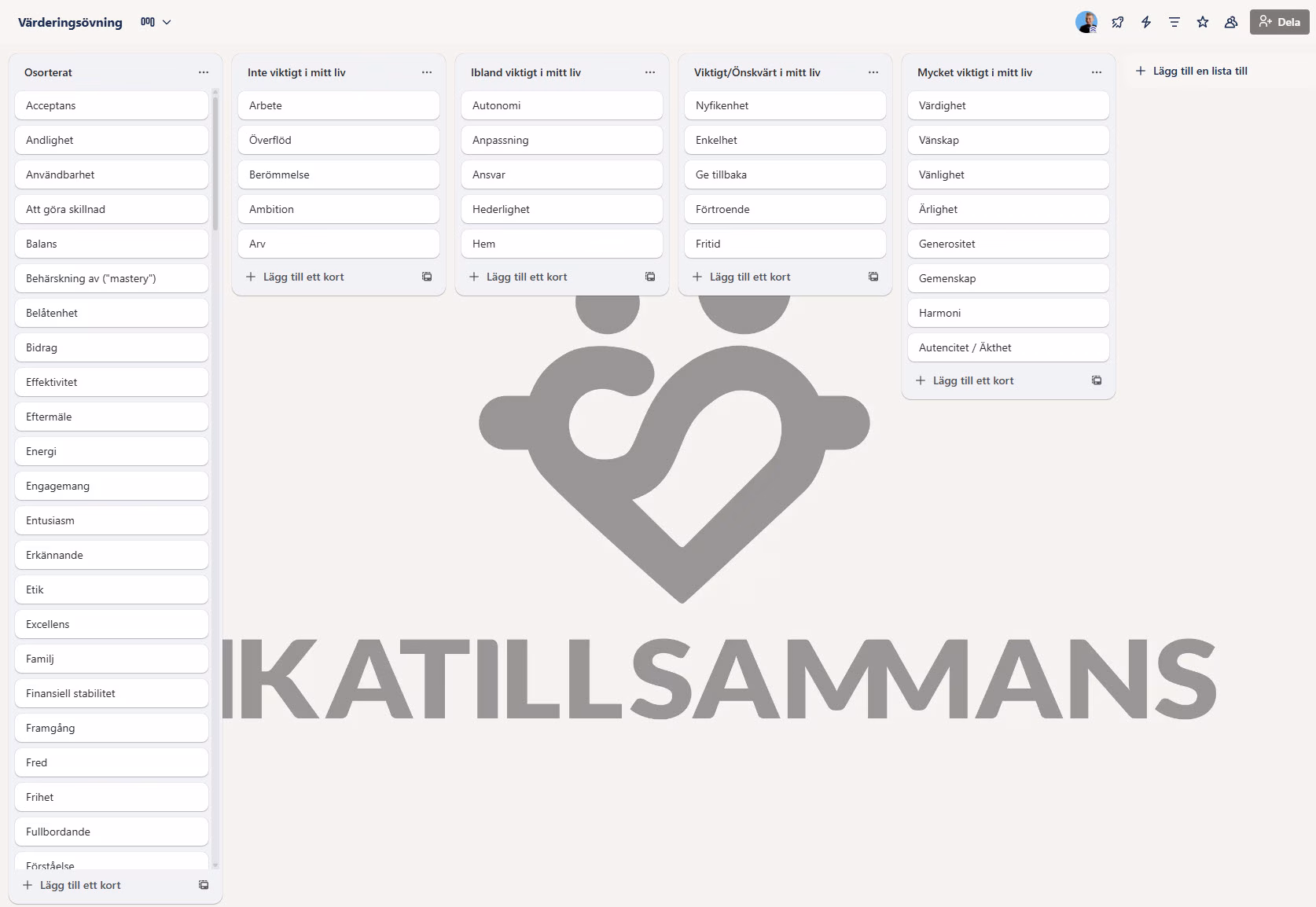 EXKLUSIVT FÖR VÅRA SUPPORTRAR – denna övning ingår utan kostnad för våra fantastiska supportrar som står i klacken och gör RikaTillsammans möjligt. Du kan självklart engångsköpa den. Om du är supporter, då hittar du värderingsövningen här.